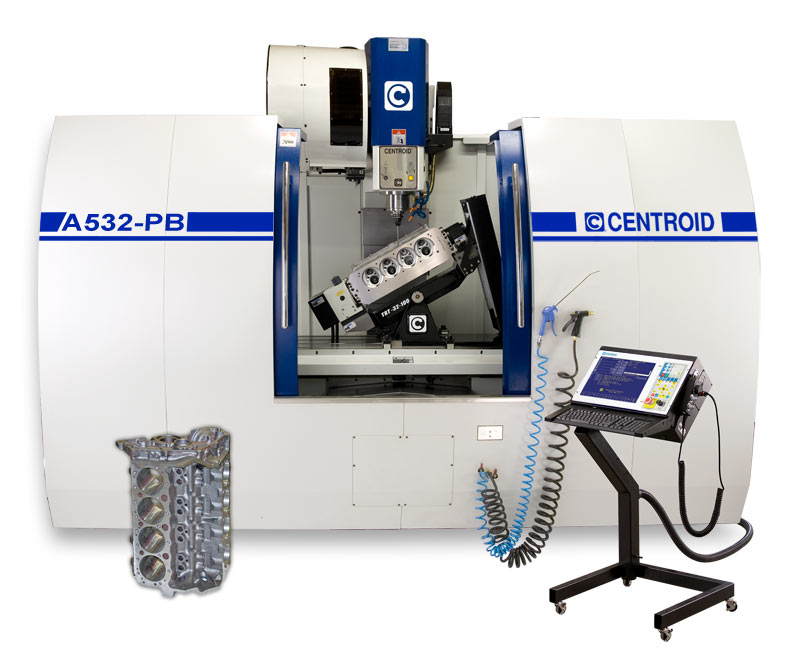 CNC Cylinder Head Porting AND CNC Block Blueprinting and Machining on the Same Machine!CENTROID's flagship A532-PB: save space and money at the same time with one machine that can do it all! Combines the proven A532 5-axis cylinder head porting machine, the B4250 engine block machine, and a fully capable machining center in one affordable package. Port heads in the morning and blueprint and machine blocks in the afternoon! |